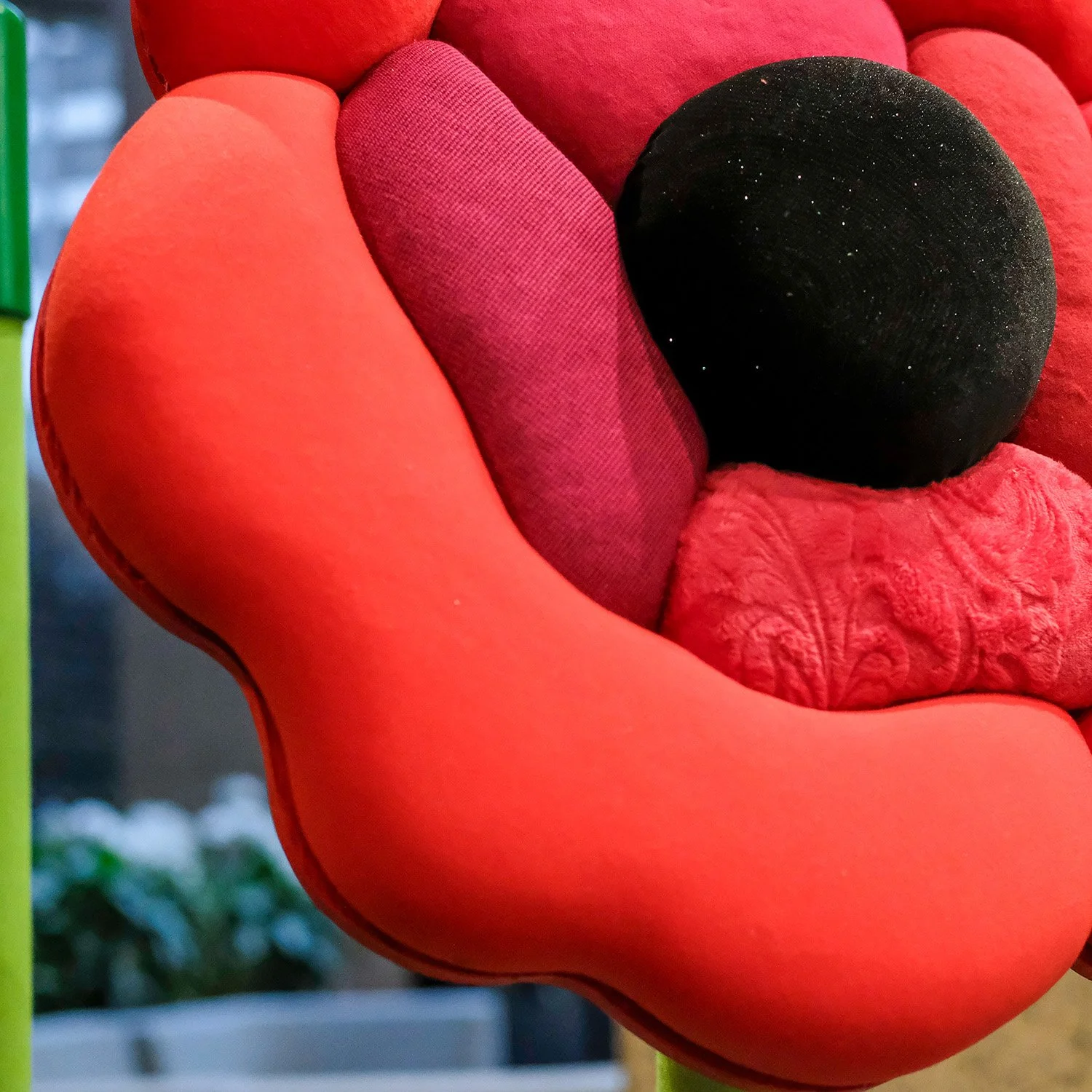 Created for QuadReal Property Group, these oversized soft poppies are crafted from recycled fabrics. Every year, during Remembrance Day, they bring colour, texture, and a solemn tribute to the Park Place building lobby.