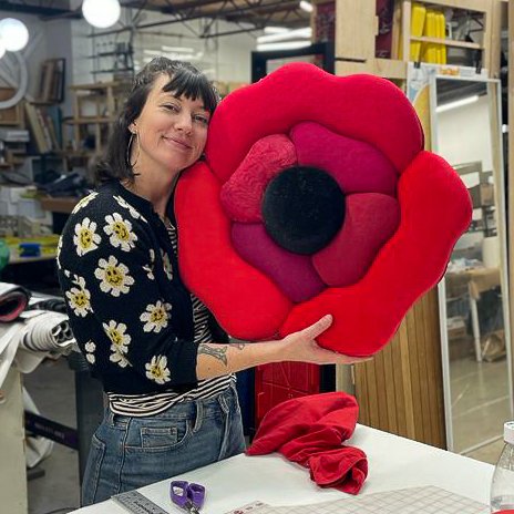 Giant upholstered soft poppy flowers for Remembrance Day.